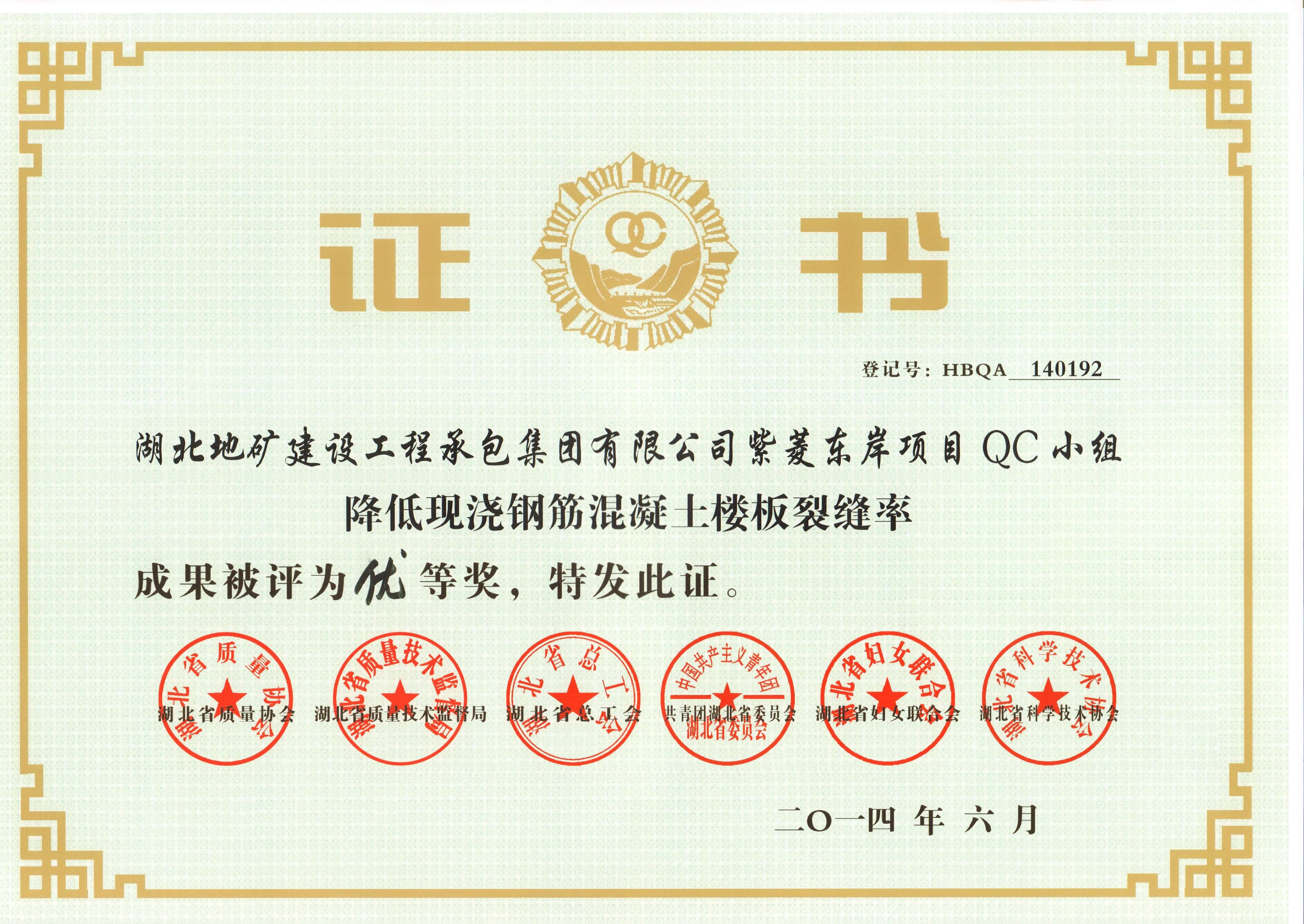 承包公司紫菱東岸QC小組優(yōu)秀質(zhì)量管理小組