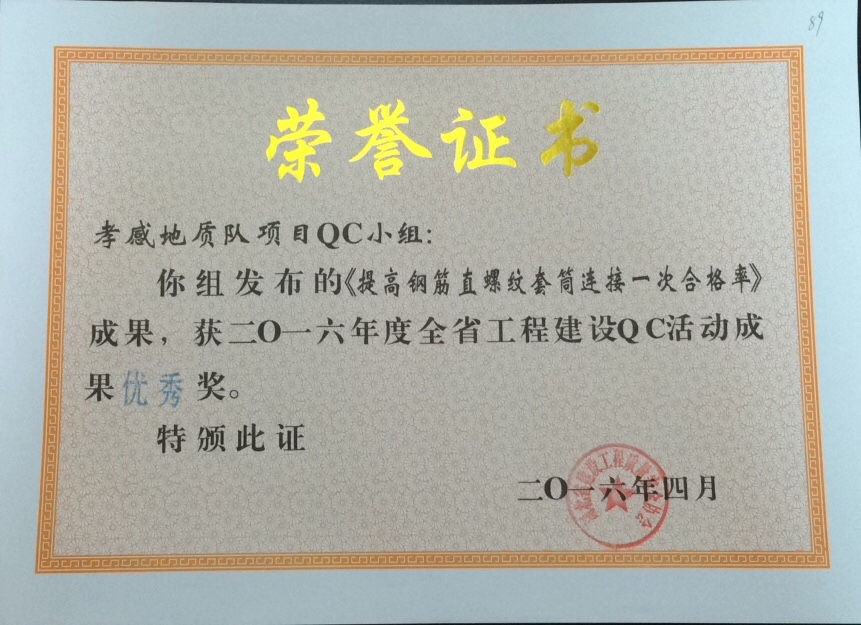 地建翱翔QC小組獲2019年度全省工程建設(shè)QC活動(dòng)成果優(yōu)秀獎(jiǎng)