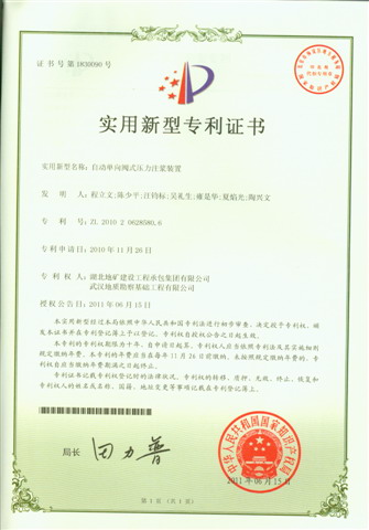 日前,由湖北地礦建設(shè)工程承包集團有限公司和武漢地質(zhì)勘察基礎(chǔ)工程有限公司聯(lián)合申報的“自動單向閥式壓力注漿裝置”技術(shù)被國家知識產(chǎn)權(quán)局授予實用新型專利。這是繼“鉆孔灌注樁可回收吊筋結(jié)構(gòu)”取得實用新型專利權(quán)后的又一項專利成果。