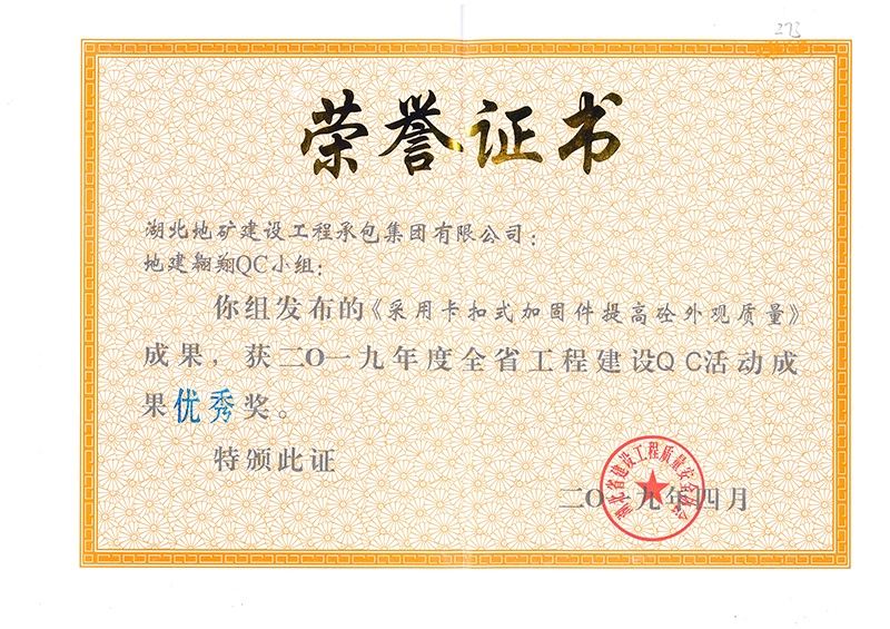 地建翱翔QC小組獲2019年度全省工程建設(shè)QC活動(dòng)成果優(yōu)秀獎(jiǎng)