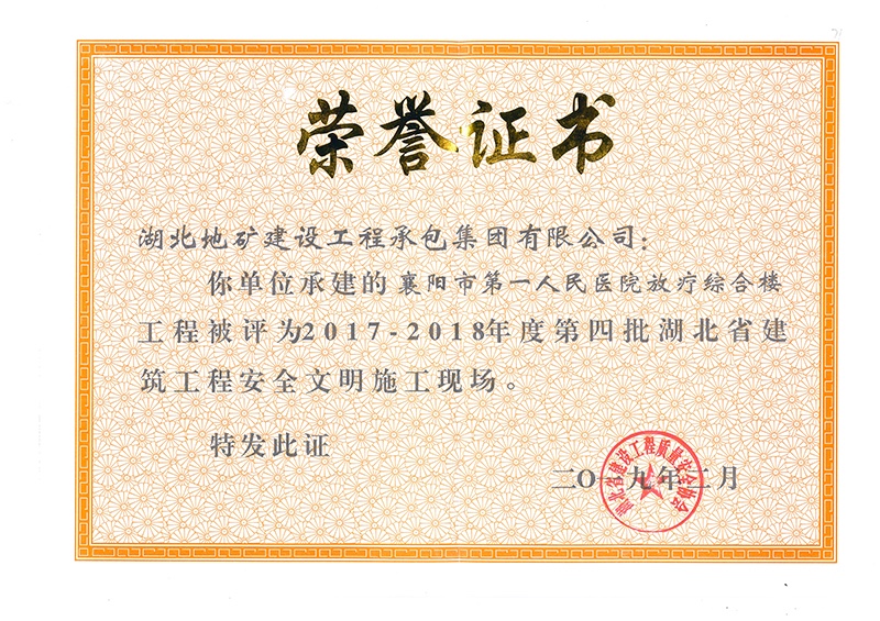 襄陽(yáng)人民醫(yī)院項(xiàng)目被評(píng)為湖北省建筑工地安全文明施工現(xiàn)場(chǎng)