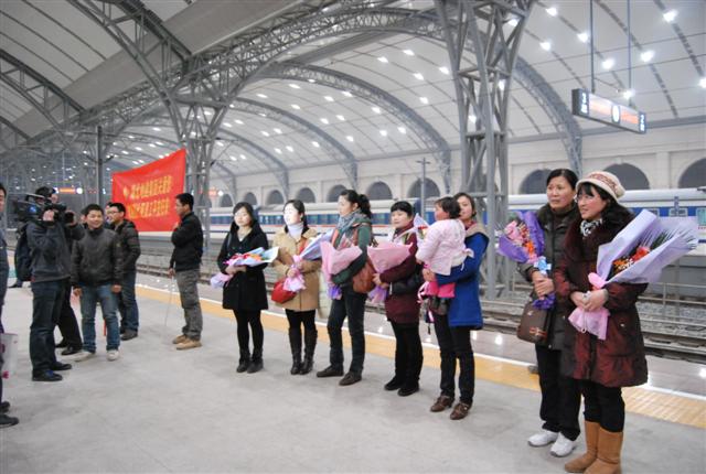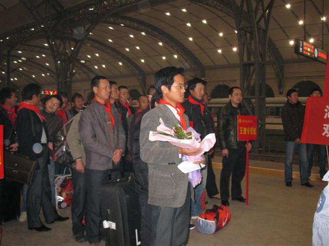 根據(jù)地建集團(tuán)北京辦事處發(fā)回的列車信息,為做好迎接最后一批回國人員,地建集團(tuán)啟動了安置預(yù)案,迅速安排了食宿和接送車輛,并妥善接待了家屬。 21時20分,列車比預(yù)計時間提前8分鐘到達(dá),領(lǐng)導(dǎo)和家屬第一時間送上了鮮花和問候,媒體記者也通過手中的相機(jī)記錄了這感人至深的畫面。各班組勞務(wù)工人有序的排隊登記,他們對著攝像機(jī)高呼“祖國萬歲”并齊聲高唱中華人民共和國國歌,洪亮的歌聲在站內(nèi)響徹回蕩,顯得格外壯觀。 曾環(huán)宇代表省地礦局發(fā)表了重要講話,對地建集團(tuán)組織此次安全撤離工作給予了充分肯定和高度評價,并對所有回歸人員表示親切的慰問。