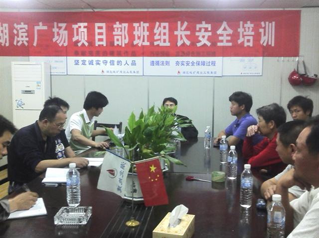 為牢固樹立安全生產(chǎn)管理理念,堅持“安全第一、預(yù)防為主”的安全管理方針,2011年5月11日晚上,大冶湖濱廣場項目部對班組長進(jìn)行了安全管理知識培訓(xùn)。