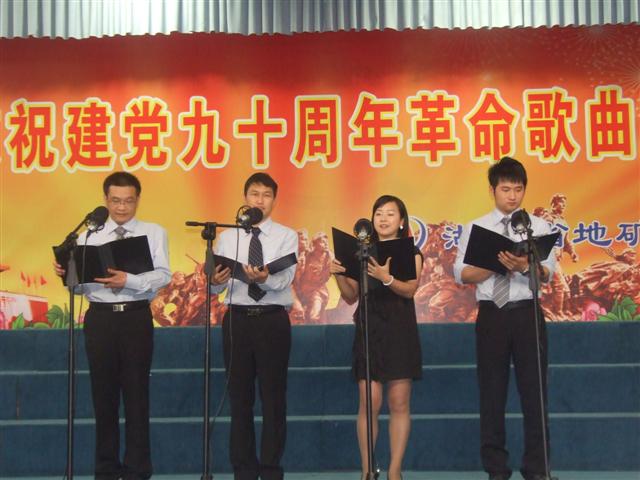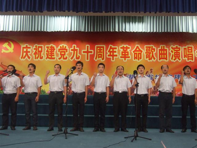 2011年6月27日,湖北省地礦建設(shè)工程院在武漢市寶豐賓館舉行慶祝建黨九十周年革命歌曲演唱會(huì),省地質(zhì)工會(huì)主席鐘偉應(yīng)邀出席觀看了演唱會(huì),并作了熱情洋溢的講話。 工程院通過舉辦此次活動(dòng),抒發(fā)了廣大職工對(duì)黨和祖國的無限熱愛,凝聚了全院干部職工的集體力量,表達(dá)了全體地建人緊跟黨走的忠誠和信心。 演唱會(huì)在院領(lǐng)導(dǎo)和院機(jī)關(guān)部門負(fù)責(zé)人合唱《沒有共產(chǎn)黨就沒有新中國》的雄壯激昂歌聲中拉開了序幕。大家用最美的心聲,誠摯的情感,歌頌偉大的黨、偉大的祖國,歌頌改革開放取得的輝煌成就,鼓舞全體地建人意氣風(fēng)發(fā)投身“二次創(chuàng)業(yè)”的偉大事業(yè),為工程院實(shí)現(xiàn)新跨越營造良好的氛圍。 來自17家院屬單位的22支參賽隊(duì)、270多名干部員工參加了比賽。演唱會(huì)現(xiàn)場座無虛席、高潮迭起、掌聲雷動(dòng)。演員們以飽滿的熱情、鏗鏘的旋律唱出了對(duì)黨的豐功偉績和共產(chǎn)主義事業(yè)蒸蒸日上的由衷贊美。演出節(jié)目形式新穎,內(nèi)容豐富,既有紅歌聯(lián)唱、老歌新唱,又有伴舞、朗誦,有的還帶有手風(fēng)琴、電子琴伴奏,一首首經(jīng)典革命歌曲將演唱會(huì)現(xiàn)場推向了一個(gè)又一個(gè)高潮,引來觀眾陣陣掌聲,現(xiàn)場融為一片紅歌的海洋。黃石基地管理處選送的大合唱《黃河船夫曲》、黃岡基地管理處選送的大合唱《黃河大合唱等紅歌聯(lián)唱》氣勢磅礴,贏得滿堂喝彩;華強(qiáng)公司選送的《愛我中華》、武基公司選送的《我和我的祖國》、海外事業(yè)部選送的《國家》激情昂揚(yáng),博得聲聲叫好。