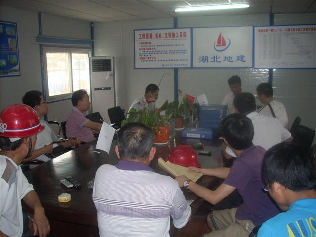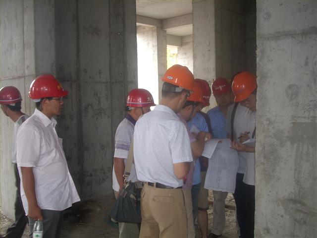 2011年7月7日上午9時,江岸區(qū)質監(jiān)站質檢科科長楊濤在業(yè)主工程部部長劉燕舞和監(jiān)理單位領導的陪同下到鼎盛華城項目部檢查指導工作。