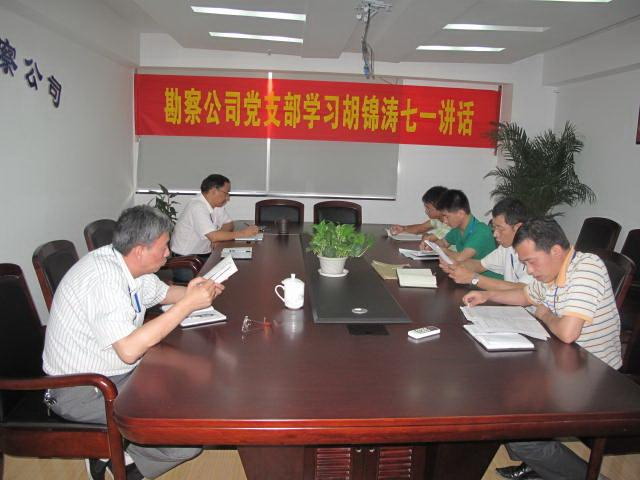 2011年7月12日,勘察公司黨支部召開生活會(huì),學(xué)習(xí)胡錦濤總書記在慶祝中國(guó)共產(chǎn)黨成立90周年大會(huì)上的重要講話精神。在學(xué)習(xí)中,公司黨員干部重溫了黨的光輝歷程,對(duì)“沒有共產(chǎn)黨就沒有新中國(guó)” 有了更加深刻的認(rèn)識(shí)。大家紛紛表示,今后要更自覺地以一名黨員的標(biāo)準(zhǔn)要求自己,廉潔自律,全心全意為職工謀福利,為集團(tuán)的二次創(chuàng)業(yè)作貢獻(xiàn),努力開創(chuàng)勘察公司的美好明天。