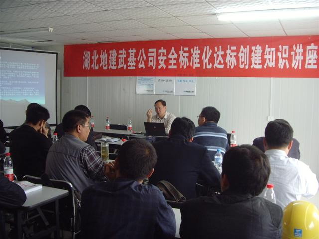 4月17日,武基公司在武漢綠地中心樁基施工項目部舉辦了一期安全標準化達標創(chuàng)建知識講座。局工程地質(zhì)處副處長周興和應邀進行了授課,武基公司領導、各工程處班子成員、專職安全員、技術(shù)員和施工員40余人參加了講座。