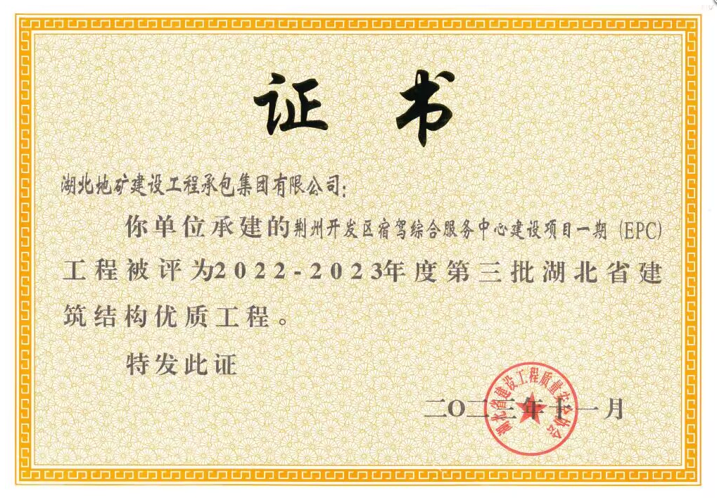 近日,承包公司承建的荊州開發(fā)區(qū)宿駕綜合服務(wù)中心建設(shè)項(xiàng)目一期(EPC)工程獲得“2022-2023年度第三批湖北省建筑結(jié)構(gòu)優(yōu)質(zhì)工程”稱號(hào)。