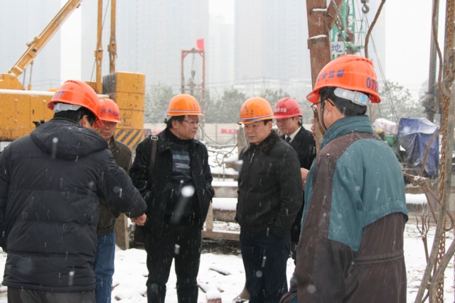 11月16日,雪花飄飛,江城凜冽,武基公司總經(jīng)理易萬(wàn)元率公司安全檢查組對(duì)在漢在建項(xiàng)目進(jìn)行安全檢查。在瑞安集團(tuán)永清片A5地塊項(xiàng)目,檢查組對(duì)整個(gè)施工現(xiàn)場(chǎng)進(jìn)行了認(rèn)真仔細(xì)的檢查,在現(xiàn)場(chǎng)安全工作會(huì)議上與項(xiàng)目經(jīng)理和安全管理人員認(rèn)真交換現(xiàn)場(chǎng)安全隱患排查意見(jiàn)。會(huì)上總經(jīng)理易萬(wàn)元同志對(duì)項(xiàng)目的工期、質(zhì)量、安全、文明施工等方面提出了建議和要求。易萬(wàn)元同志特別強(qiáng)調(diào):降雪施工一定要注意保障施工人員的安全,謹(jǐn)防人員凍傷,要認(rèn)真做好降雪防范應(yīng)對(duì)工作,確保冬季安全生產(chǎn)。