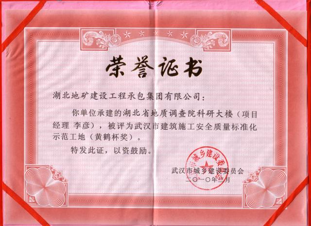 湖北省地調(diào)科研科研大樓是湖北地礦建設(shè)工程承包集團(tuán)有限公司的重點施工項目,今被評為武漢市建筑施工安全質(zhì)量標(biāo)準(zhǔn)化示范工地(黃鶴杯)。在整個施工過程中,地建承包公司一直遵循“用探索地球的智慧做建筑”的宗旨,注重施工質(zhì)量,嚴(yán)抓施工安全,創(chuàng)造優(yōu)良的施工環(huán)境。該項榮譽的取得又為地調(diào)大樓這座精品建筑添上了濃重的一筆亮彩。