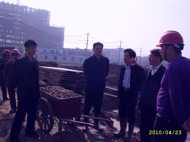 2010年4月23日,漢南區(qū)區(qū)委書記曹裕江、區(qū)發(fā)改委主任黃忠華等一行到承包公司湖北國土資源職業(yè)學院漢南項目調(diào)研。曹裕江聽取了項目執(zhí)行經(jīng)理張煥生同志關于施工進度情況的匯報,實地察看了項目的建設情況,了解了施工過程中需要區(qū)委幫助協(xié)調(diào)解決的問題和困難,并就項目建設情況給予了一些具有指導性的意見和建議。
