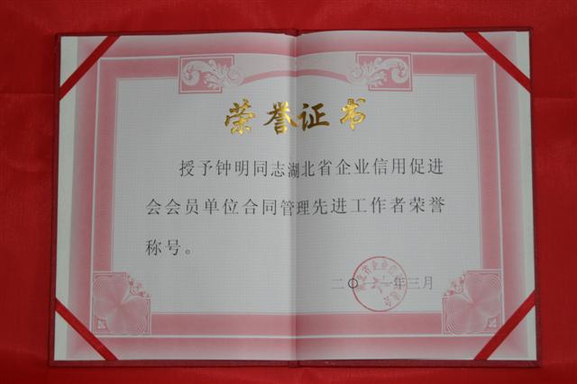 近日,湖北省工商局、省企業(yè)信用促進會在武昌洪廣大酒店聯(lián)合舉辦2011年度湖北省企業(yè)信用促進理事會。武基公司作為企業(yè)會員單位參加了會議,公司總工程師鐘明被評為“湖北省企業(yè)信用促進會會員單位合同管理先進工作者”榮譽稱號。
